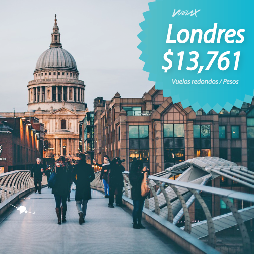 Ruta: CDMX a Londres 🇬🇧 > Y por aprox $1,200 -$2,300 pesos más desde Guadalajara, Veracruz, Monterrey, Cancún, Silao, Tijuana, Mérida, Hermosillo, Durango, Los Mochis, Villahermosa, Zacatecas, Culiacán, Tuxtla Gutiérrez, San José del Cabo, Aguascalientes, Morelia, Ciudad Juárez, Torreón, Tampico, Mexicali, Oaxaca, Puerto Vallarta y más ciudades. Cambia la ciudad de salida en los links