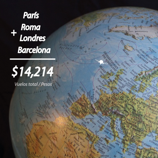 La ruta es CDMX – BCN – PAR – ROM – LON – BCN – CDMX