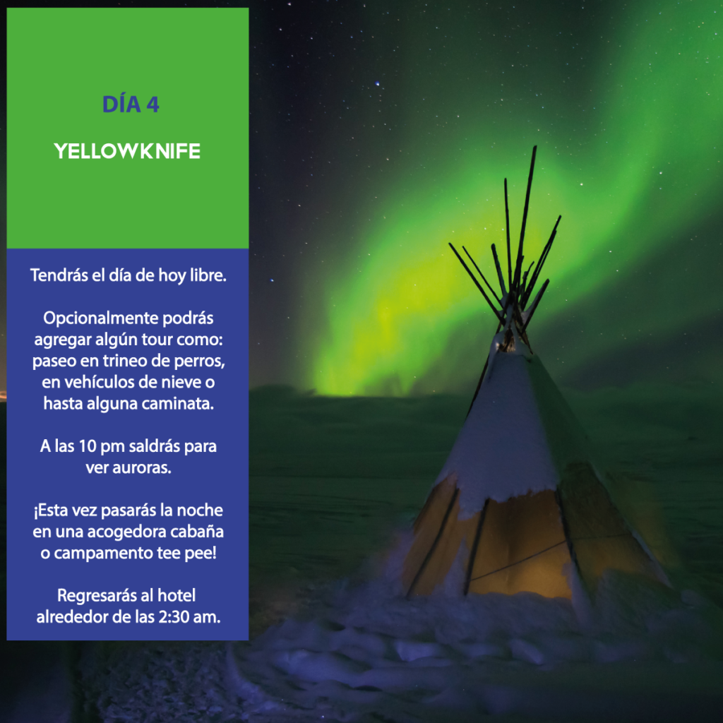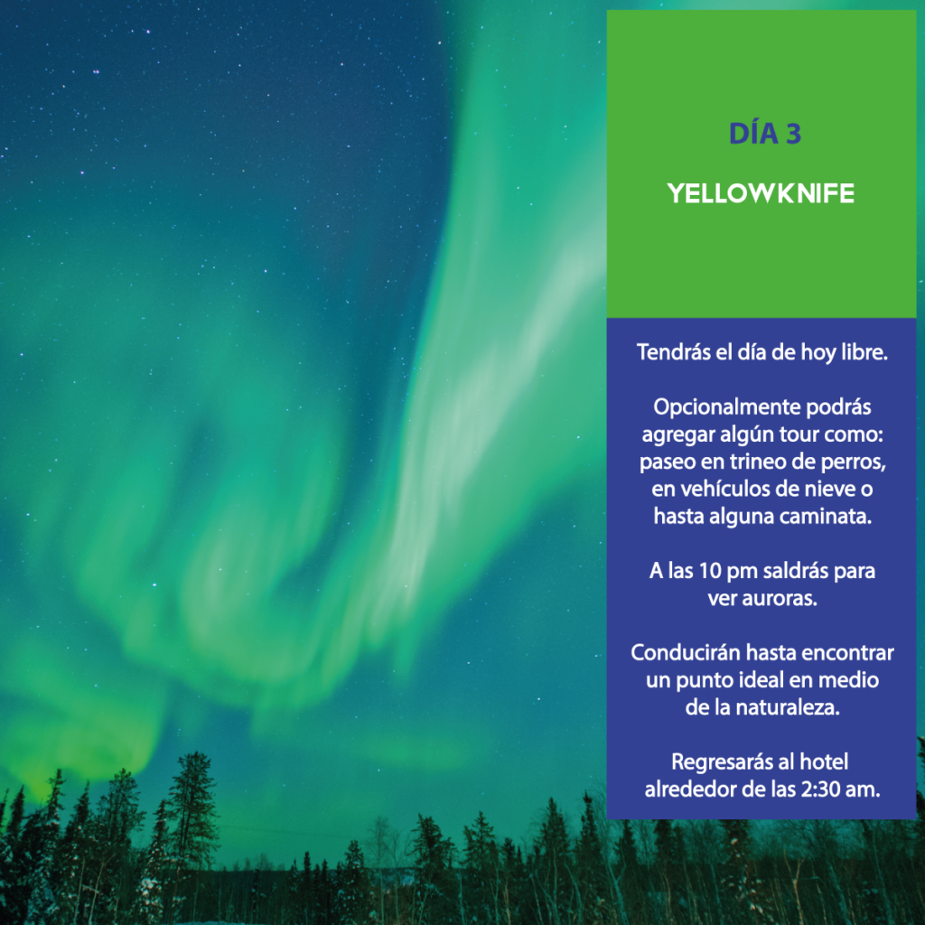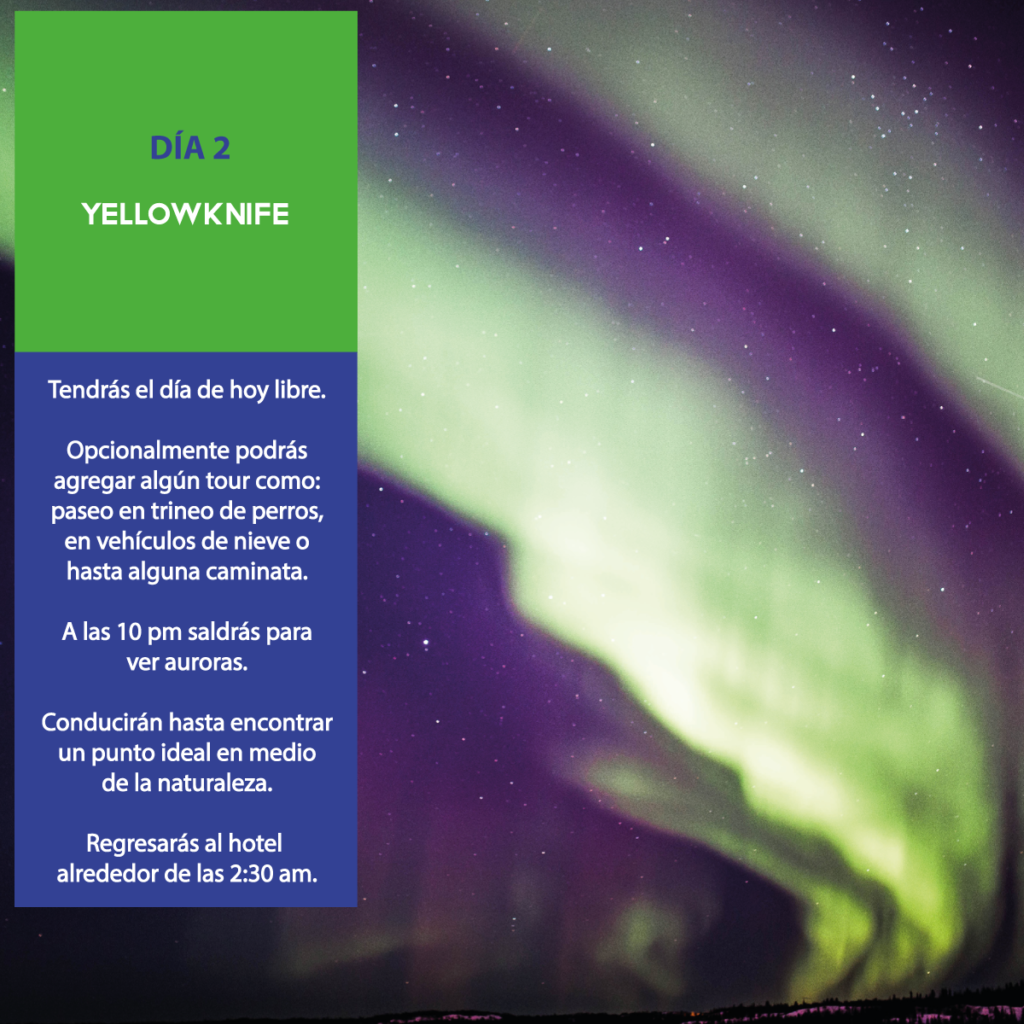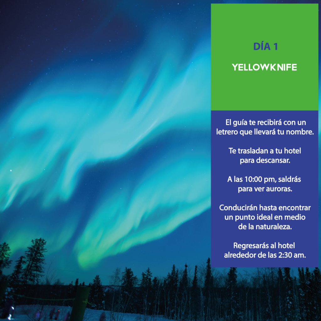 ¡Una experiencia mágica de 5 días buscando auroras boreales en el Ártico Canadiense! 🇨🇦 Sin visa necesaria, con guias en español, pago a meses y garantía de satisfacción total. ¡Aparta con $2,490!