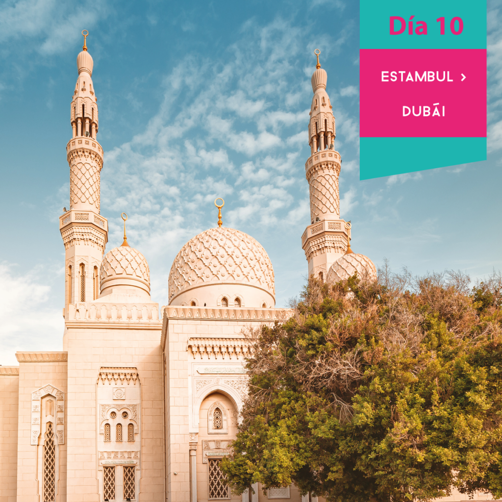 Llegada al Aeropuerto Internacional de los Emiratos Árabes Unidos. Realizaremos la visita “Dubái Clásico”. Este recorrido le llevará hasta las magníficas vistas de la ensenada de Dubái Creek, pasando por el área de patrimonio de Bastakiya y sus fascinantes casas antiguas con características torres de viento construidas por ricos mercaderes. A continuación, visitaremos la fortaleza de Al Fahidi de 225 años de antigüedad. Es aquí donde el museo de Dubái conserva valiosos archivos acerca del pasado de la ciudad, así como crónicas de sus diferentes fases de desarrollo. Luego subirán a bordo de un barco tradicional llamado “abra” para atravesar la ensenada y visitar el mercado de especias y el zoco del oro. Luego por la carretera de Jumeirah, vistas de la Mezquita de Jumeirah. Parada para fotos en el Burj al Arab el único hotel 7 estrellas en el mundo pasando por el World Trade Center y el Centro Internacional Financiero y al final pasaremos por el Burj Khalifa, el edificio más alto del mundo, opcionalmente, podrá subir al mirador en el piso 124,(regreso al hotel para los pasajeros que no quieren quedarse en Dubai Mall después de la parada o subida opcional (con costo adicional) a Burj Khalifa, los pasajeros que deseen quedarse en el Mall para hacer compras y asistir el espectáculo de las fuentes danzante, deberán regresar el hotel por su cuenta). Alojamiento.