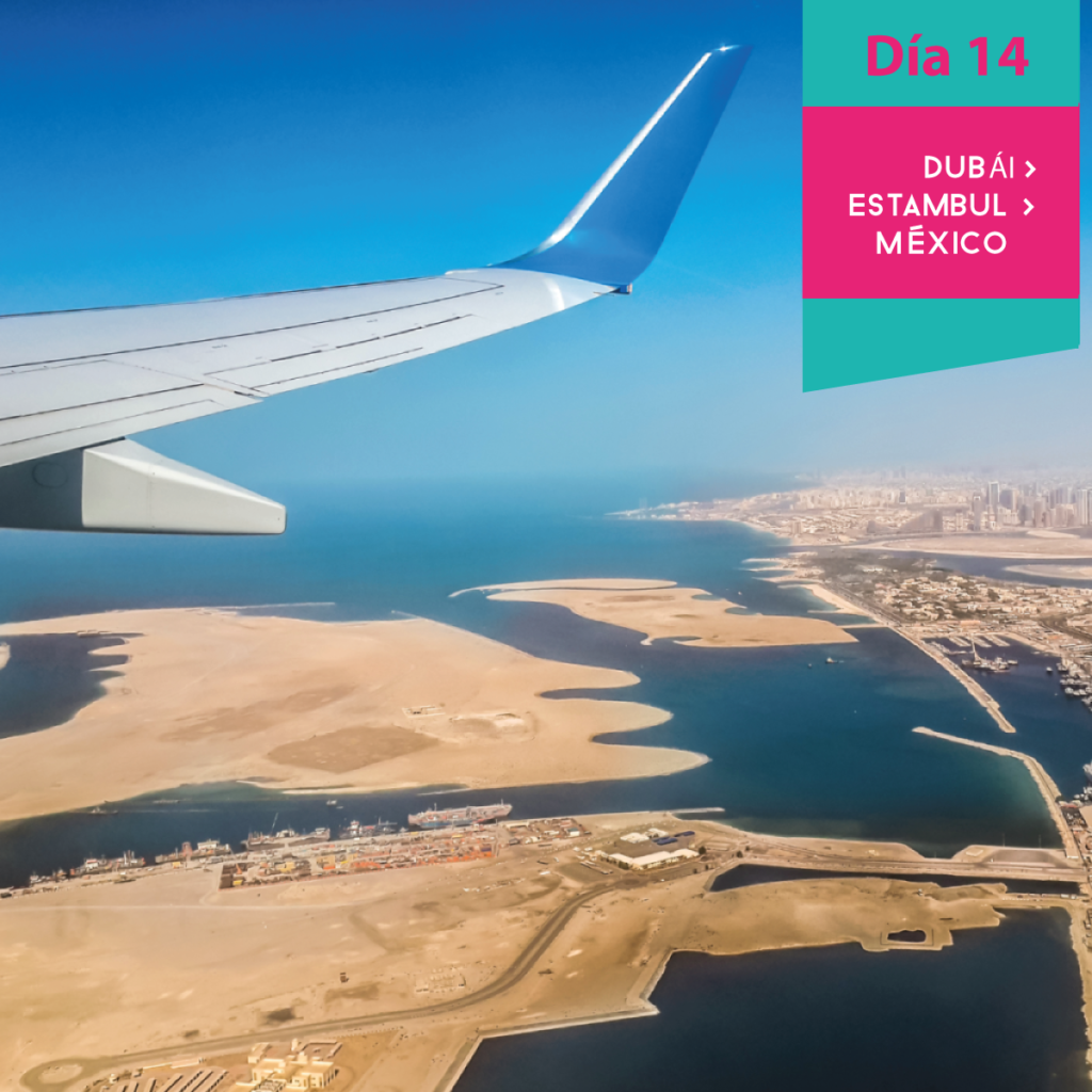 *Boleto de avión en viaje redondo México – Estambul – Dubai – Estambul – México en clase turista.